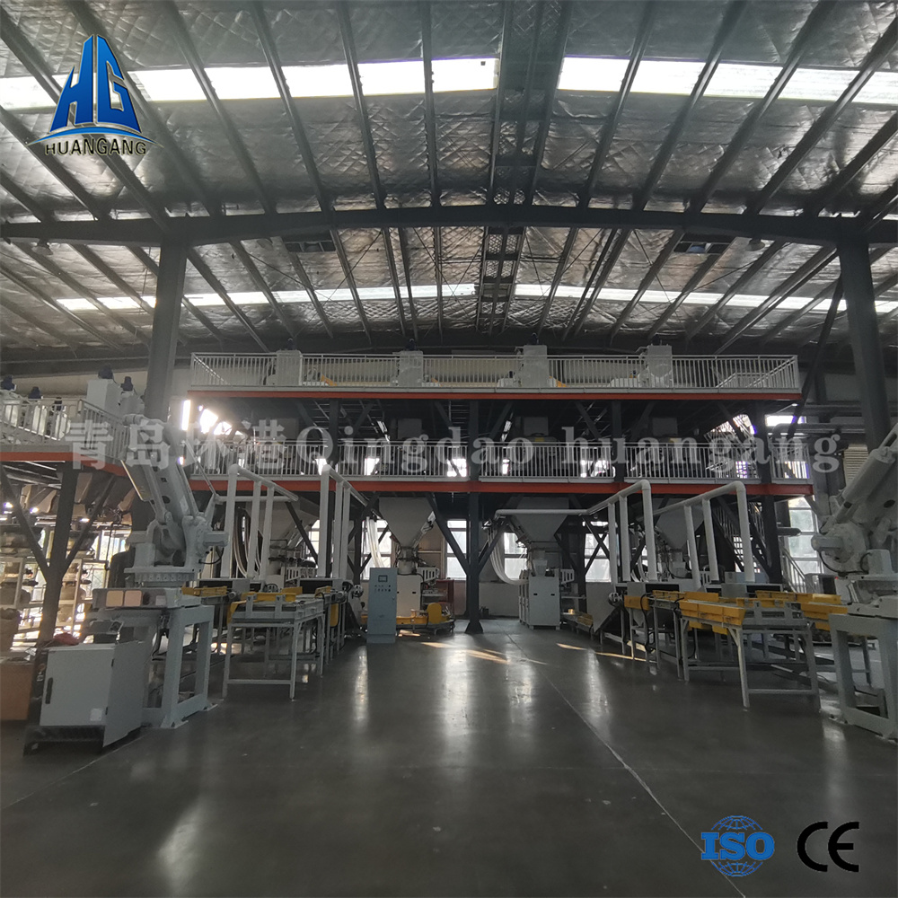 這是一套年產(chǎn)10-30萬噸的全自動環(huán)保膩子粉成套設(shè)備。通過調(diào)配原料的比例不同可生產(chǎn)內(nèi)墻膩子、外墻膩子、普通膩子、鏡面膩子、石膏膩子等多種類膩子粉產(chǎn)品。每小時根據(jù)所選型號不同,可生產(chǎn)10~30噸產(chǎn)品,生產(chǎn)線主樓采用塔式結(jié)構(gòu),粉料倉安裝在主樓頂部,外加劑系統(tǒng)采用獨立平臺計量泵送。骨料自上而下經(jīng)過計量層、混合機(jī)層、成品倉、包裝機(jī)、碼垛線。根據(jù)膩子粉的配方要求,可通過電腦計量精確配料后,經(jīng)過混合主機(jī)攪拌,即時生產(chǎn)出需要的膩子粉產(chǎn)品。全過程采用智能自動化操作模式,減少人力投入