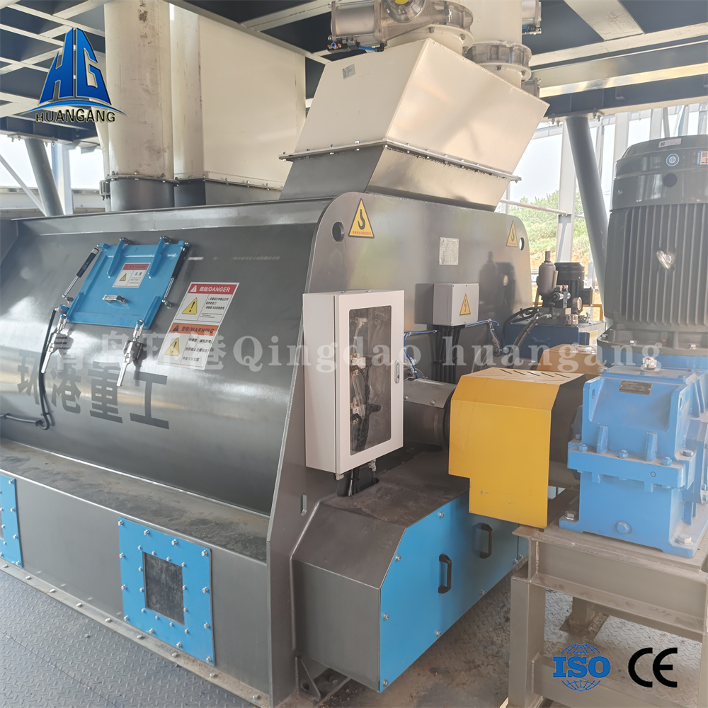 雙軸無重力混合機(jī)最大容積可達(dá)4000-8000L,雙軸轉(zhuǎn)速每分鐘55轉(zhuǎn),相比于單軸混合機(jī)攪拌容積比較大,適合更大產(chǎn)量的散裝物料生產(chǎn),能在180秒左右把計量好的砂子,水泥,石膏、粉煤灰、重鈣、灰鈣,外加劑等原材料充分翻合均勻,形成達(dá)到規(guī)定強(qiáng)度的成品物料,還使用了獨(dú)特的液壓開門結(jié)構(gòu),能使物料在10秒內(nèi)卸料完成,出料殘余少,并且我們的混合機(jī)出料口設(shè)有分料器,可根據(jù)需要控制成品物料是送往包裝機(jī)進(jìn)行袋裝或經(jīng)過干粉送料螺旋送到散裝頭進(jìn)行散裝。