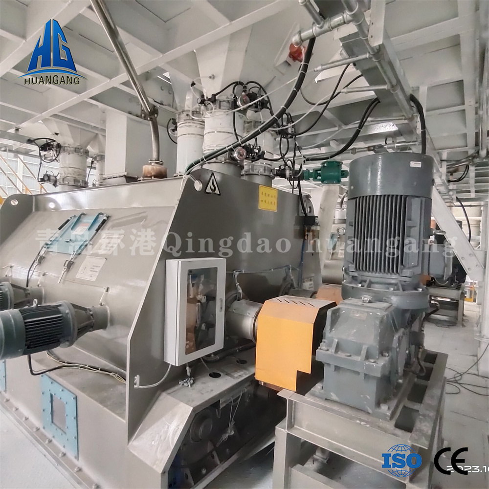 單軸無重力混合機最大容積可達4000L,每分鐘軸轉速為95轉,能在180秒左右把計量好的砂子,水泥、石膏,重鈣,灰鈣,粉煤灰,外加劑等原材料充分翻合均勻,形成達到規(guī)定強度的成品散裝物料,還使用了獨特的液壓開門結構,能使物料在10秒內卸料完成,出料殘余少,并且我們的混合機出料口設有分料器,可根據需要控制成品物料是送往包裝機進行袋裝或經過干粉送料螺旋送到散裝頭進行散裝。