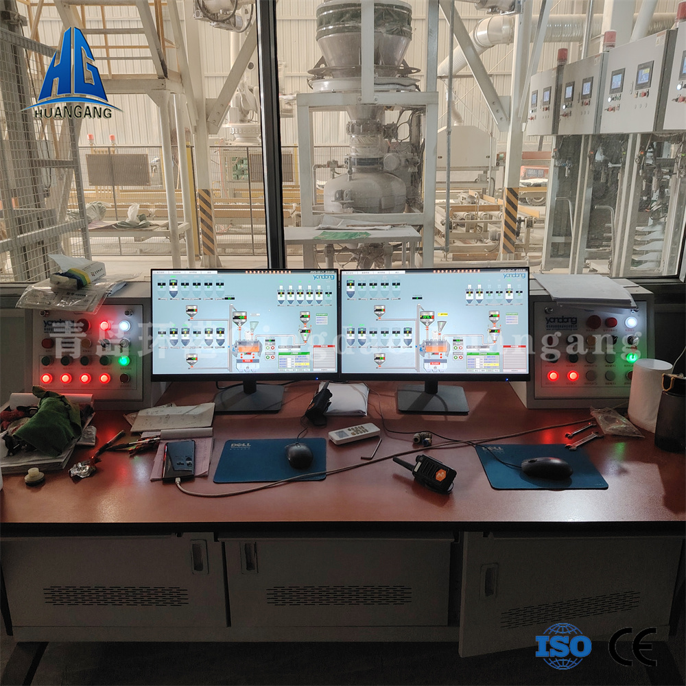 主控制系統(tǒng)依據(jù)選定工藝配方下達生產(chǎn)指令,系統(tǒng)自動從儲料倉中按配比提取原料,原料經(jīng)配重后依次進入待混倉及單軸混合機,實現(xiàn)快速混合作業(yè)(3-5分鐘)。達到混合精度要求后,成品砂漿被輸送至成品倉,進入自動灌裝流程,新設(shè)計的自動包裝機按要求進行定時定量灌裝作業(yè),大大提高產(chǎn)出效率,包裝好的成品被送至成品區(qū)堆放,等待出廠。